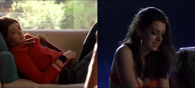 Anne Hathaway taking off her bra